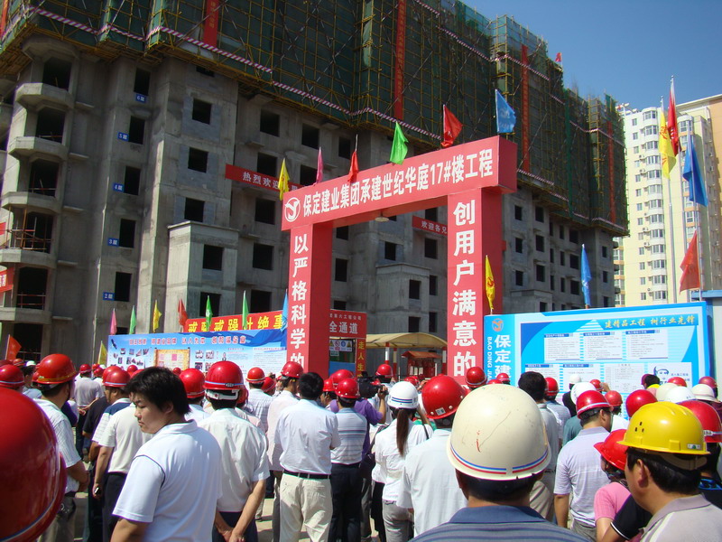 2010年7月20日,由市建设局安监站在华北电力大学会议室组织召开了建设系统安全文明施工现场会。会议有省、市安监站领导,市、县、区建设局、安监站主要领导,全市及驻保主要建筑施工企业负责人参加。集团六公司世纪华庭17号楼项目部被选为与会人员参观的样板项目部。