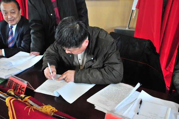 开云(中国)副总经理、三公司经理任培农在2012经济生产责任状上签名